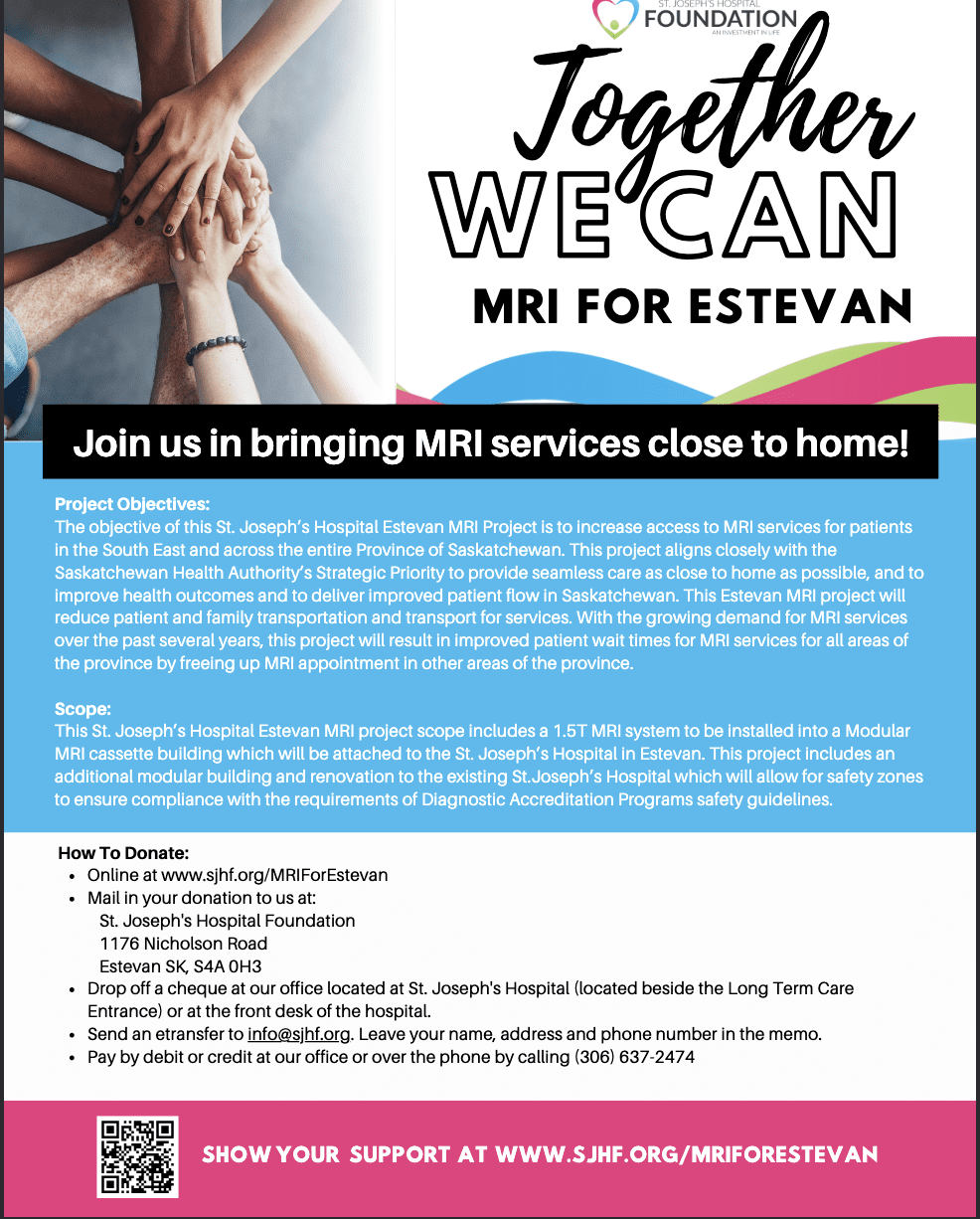 The MRI for Estevan Campaign has not only brought the region closer to better healthcare access but has also united the community in a shared mission. Patients will soon have timely, local diagnostic care, reducing travel time and stress for families.